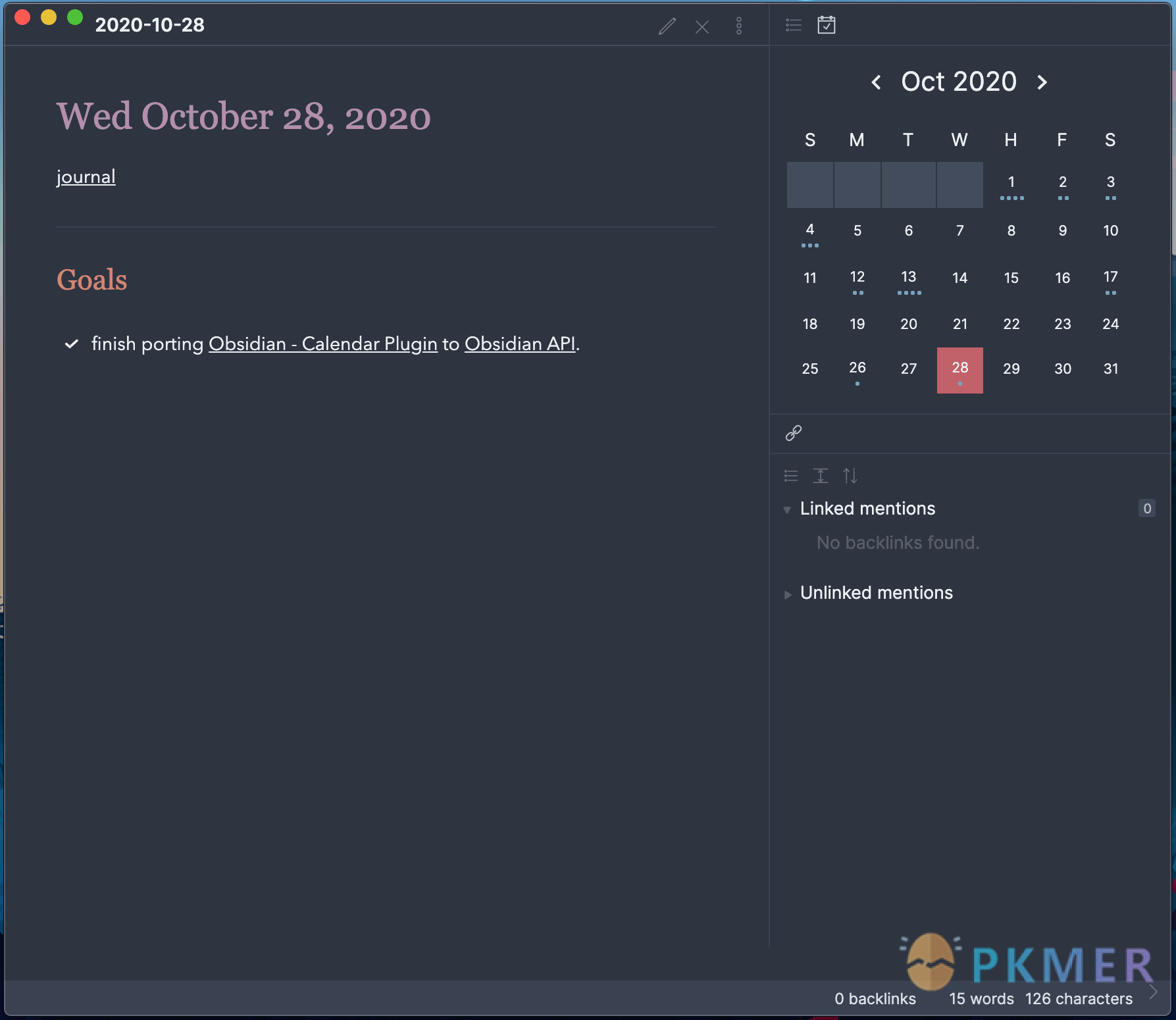 PKMer Obsidian 插件:Calendar 简单使用的阅历和任务管理方式