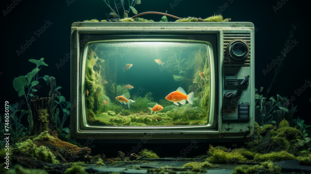 fish tank is make out of an old and obsolete TV Recycling e waste
