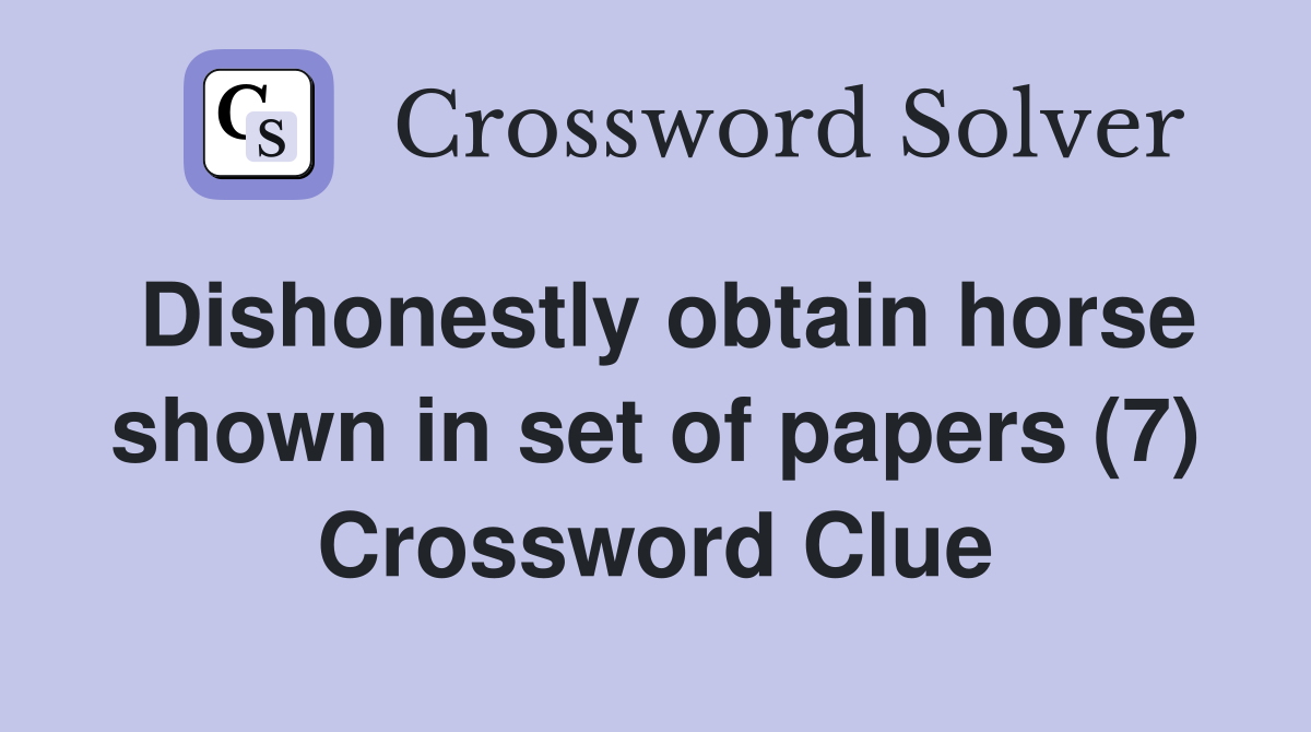 Dishonestly obtain horse shown in set of papers (7) Crossword Clue