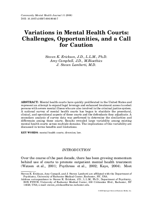 (PDF) Variations in Mental Health Courts: Challenges Opportunities