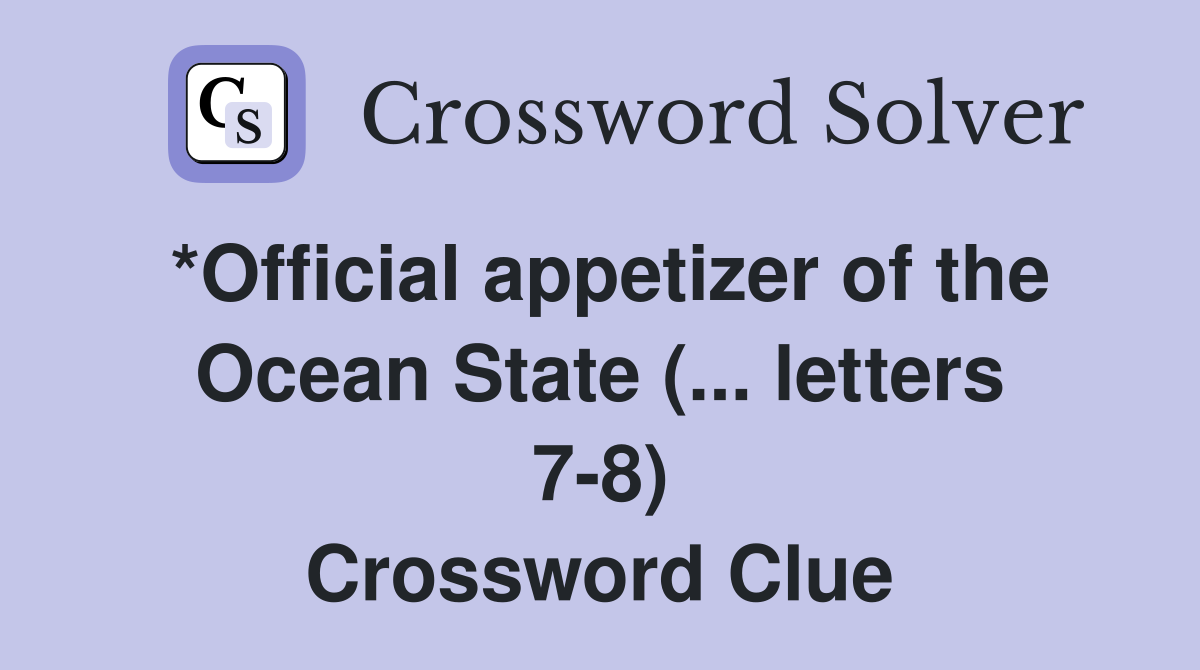 *Official appetizer of the Ocean State ( letters 7 8) Crossword