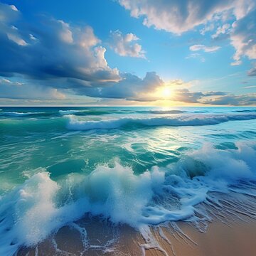 Download Sunrise Nature Sky Cloud Wave Beach Ocean Ocean Waves PFP