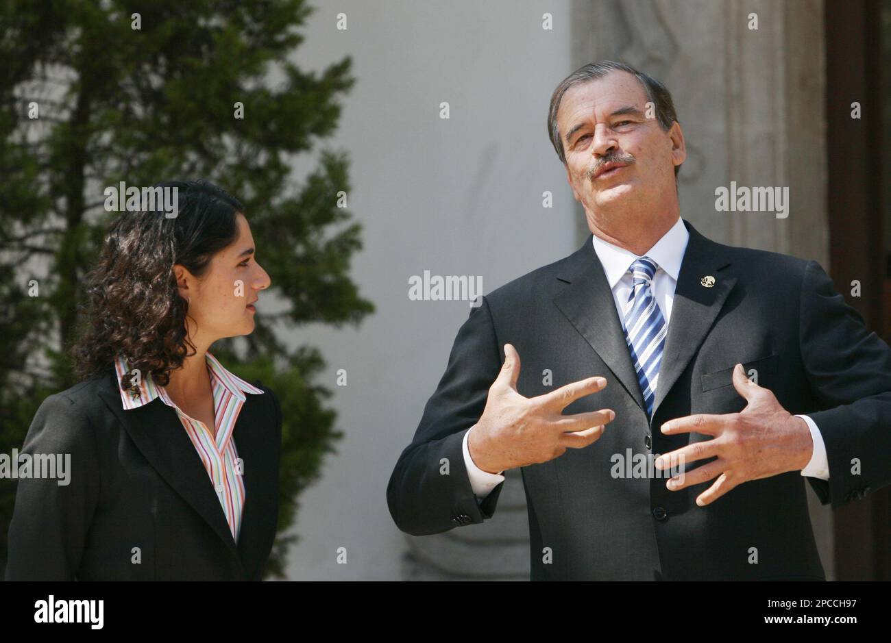 President Vicente Fox right speaks with Mexican golf star Lorena