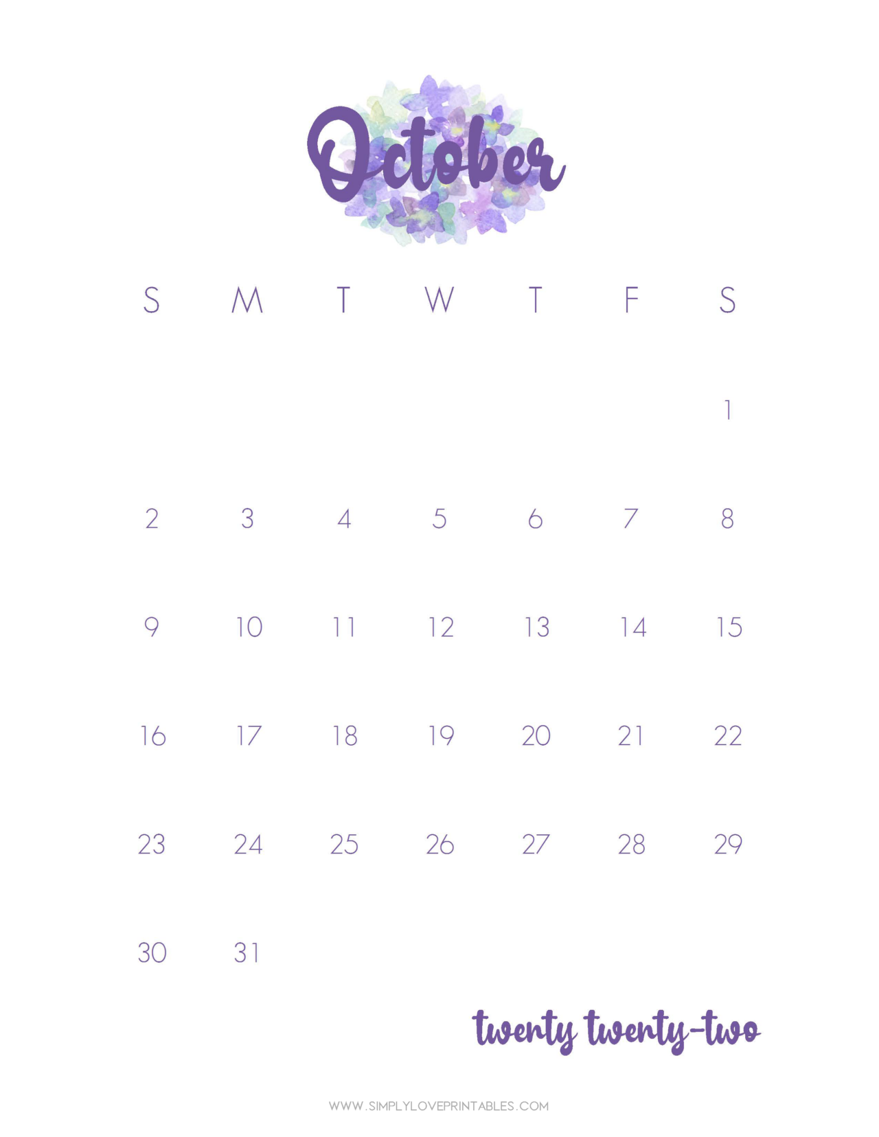 Free Printable October 2022 Calendars Simply Love Printables