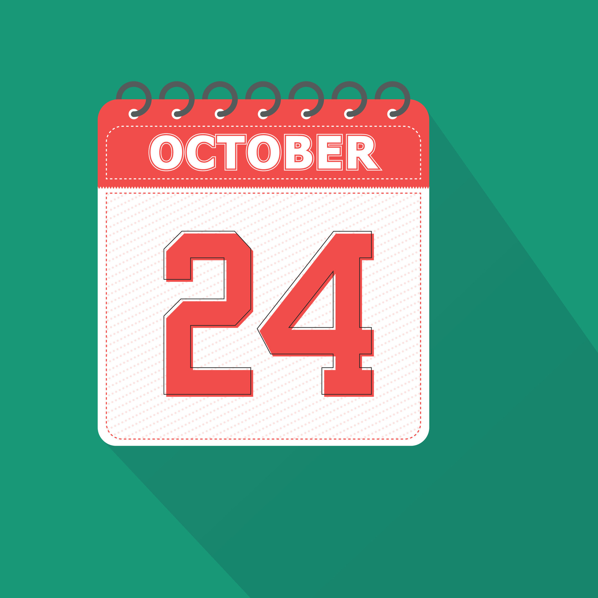 October 24 Daily Calendar Black Outline With Shadow On White Background
