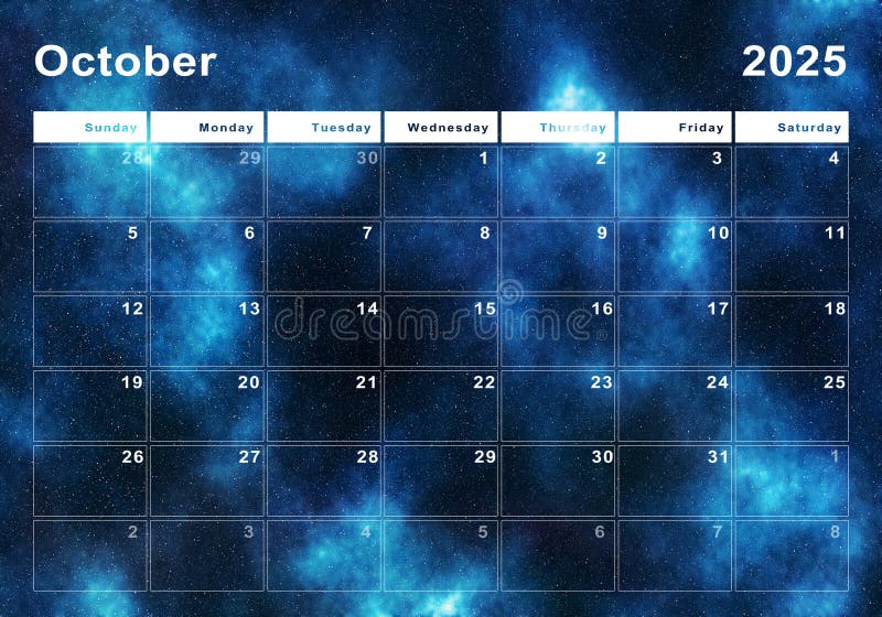 October 2025 Calendar Week Start Sunday Stock Illustration
