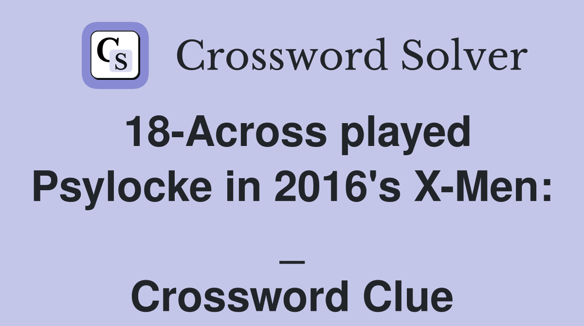 18 Across played Psylocke in 2016 #39 s X Men: Crossword Clue Answers