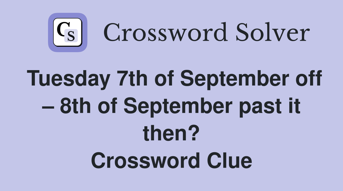Tuesday 7th of September off 8th of September past it then