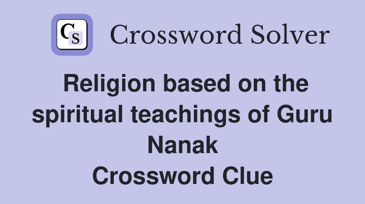 Religion based on the spiritual teachings of Guru Nanak Crossword