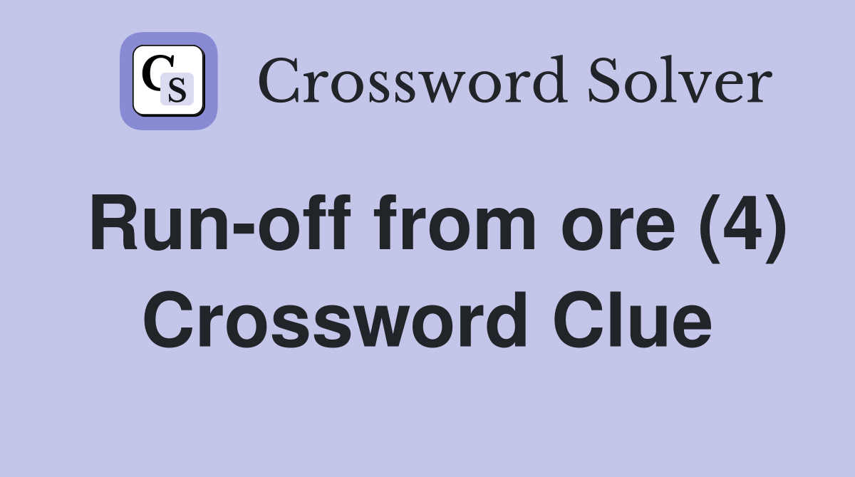 Run off from ore (4) Crossword Clue Answers Crossword Solver