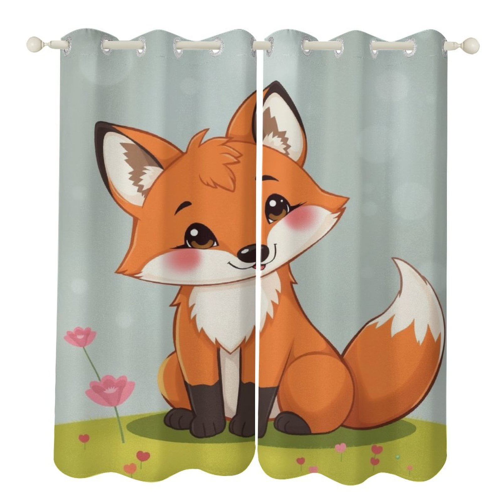 2 Panels Cute Little Fox Curtains for Bedroom Living Room Drapes