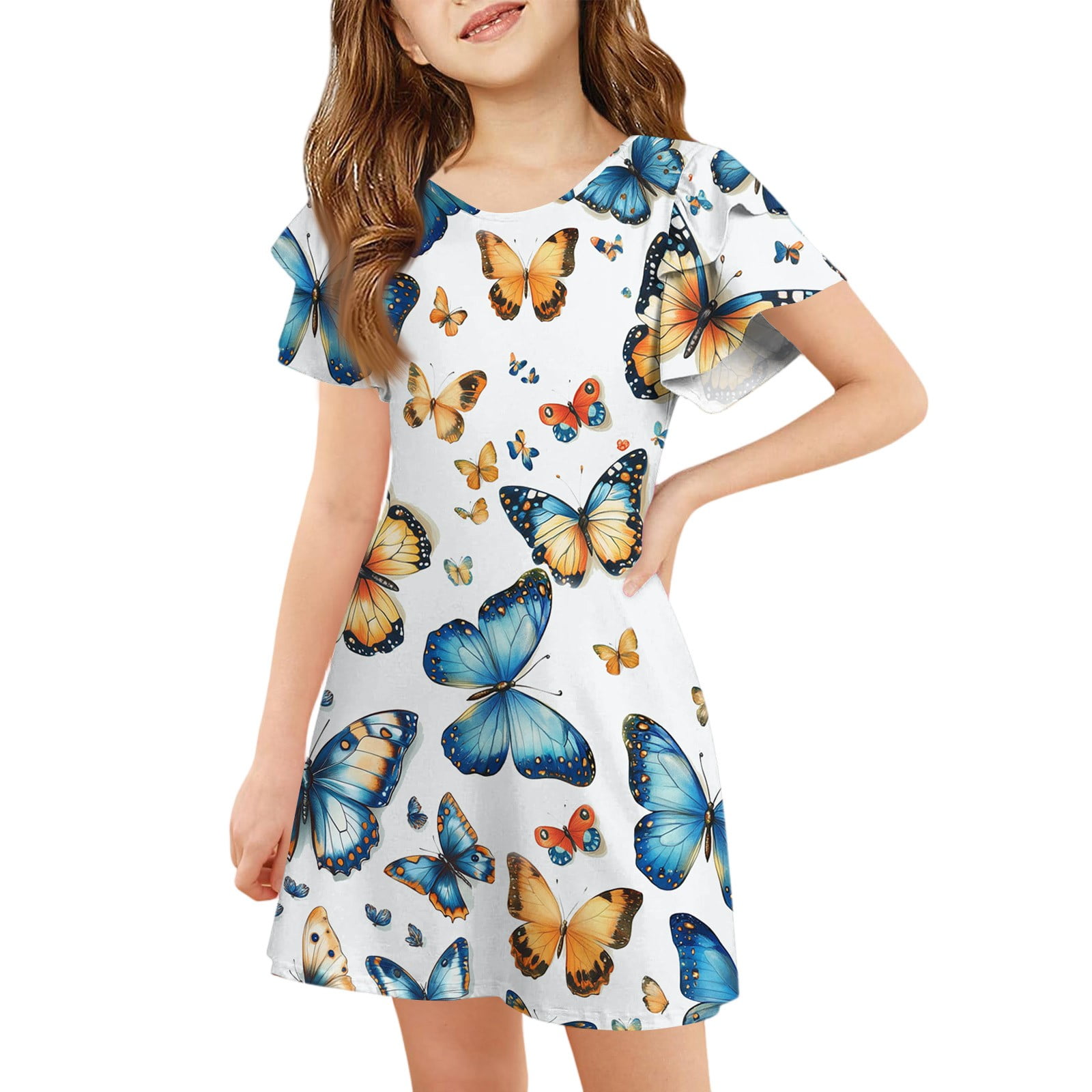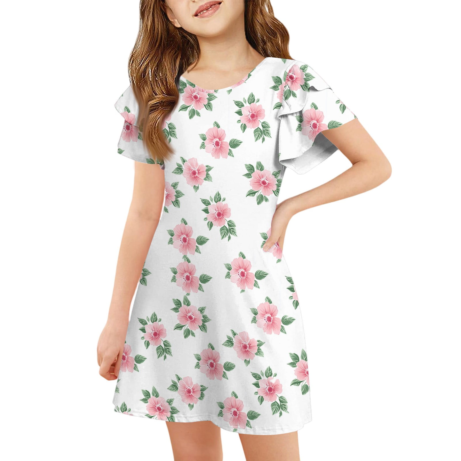 Drmagiyhm Little Girls Dresses Size 10 12 Summer Casual Ruffle Sleeve