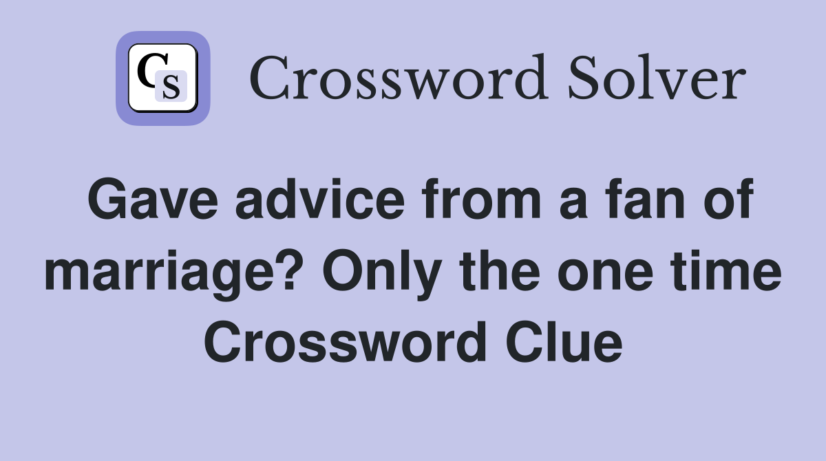 Gave advice from a fan of marriage? Only the one time Crossword Clue