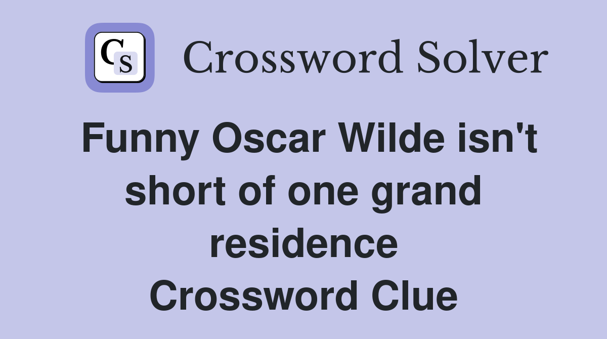 Funny Oscar Wilde isn #39 t short of one grand residence Crossword Clue