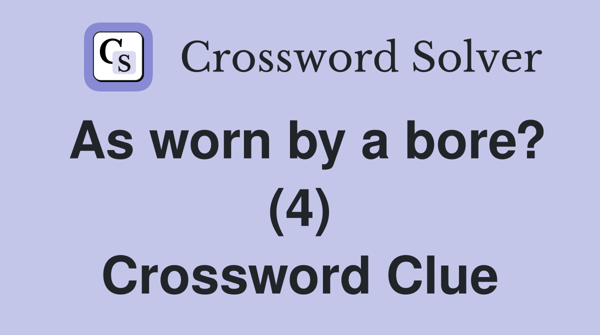 As worn by a bore? (4) Crossword Clue Answers Crossword Solver