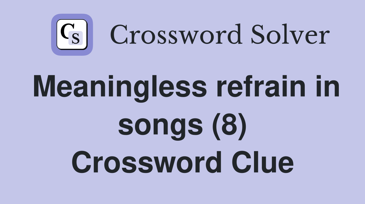 Meaningless refrain in songs (8) Crossword Clue Answers Crossword