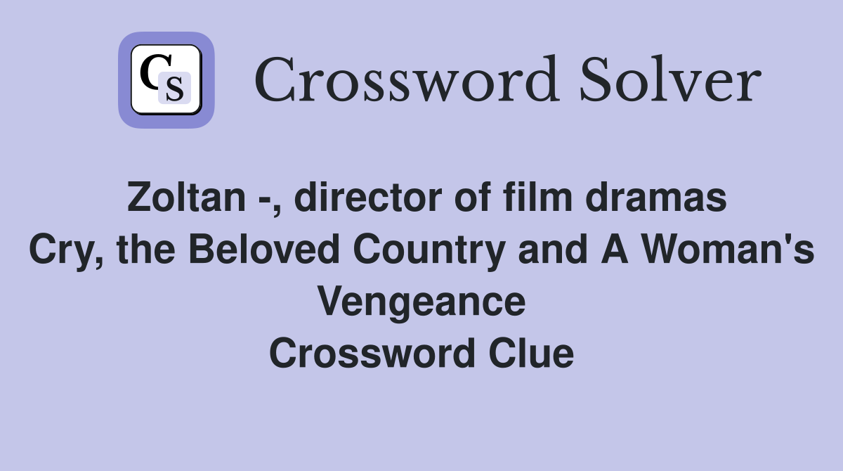 Zoltan director of film dramas Cry the Beloved Country and A Woman