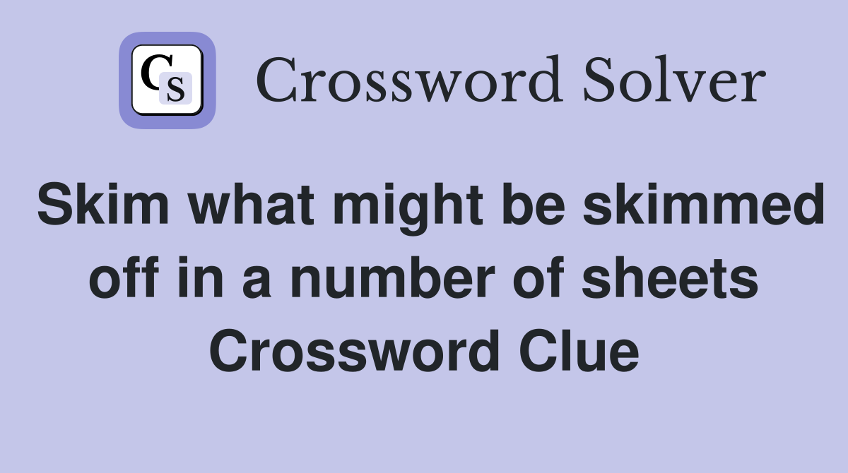 Skim what might be skimmed off in a number of sheets Crossword Clue