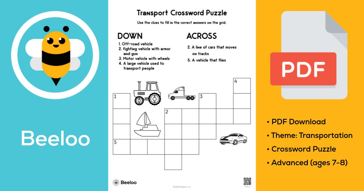 Transport Crossword Puzzle • Beeloo Printable Crafts and Activities for