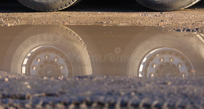 Off road Transport Reflected in a Puddle Stock Image Image of wheels