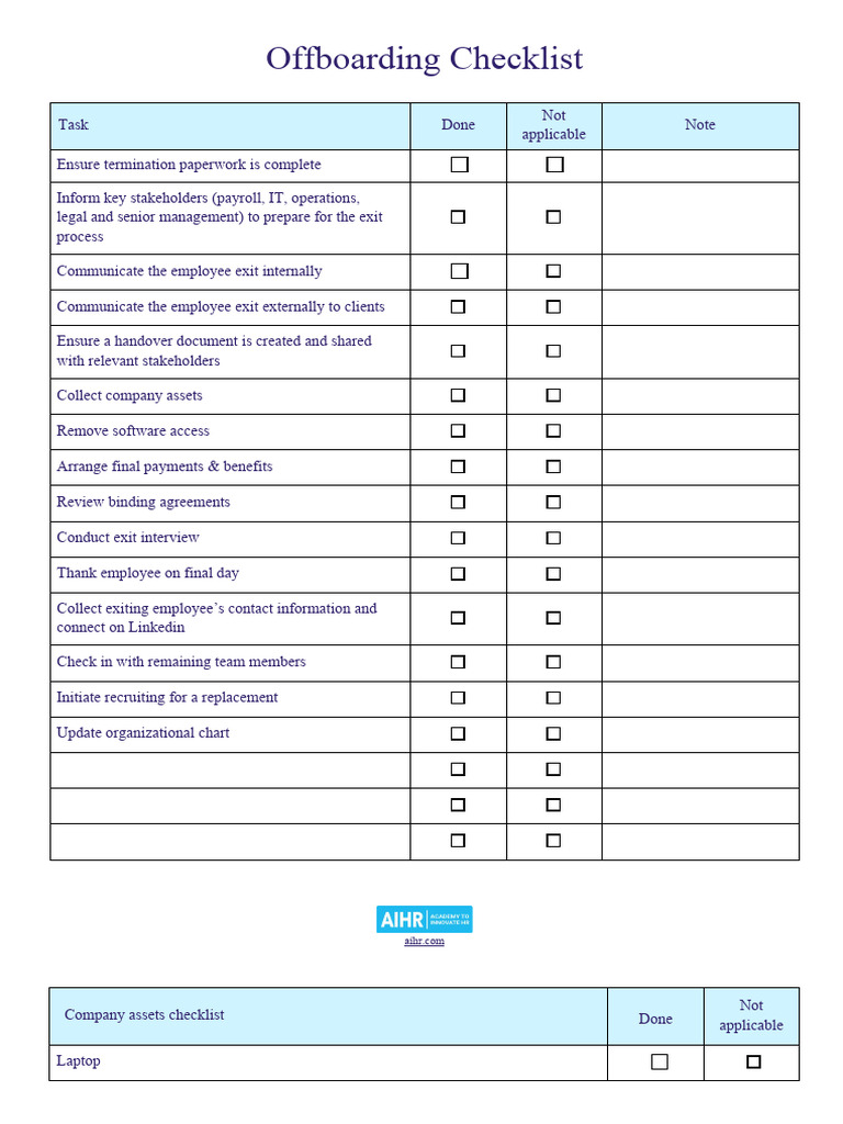 Offboarding Checklist HR Template in Word PDF Google Docs Download