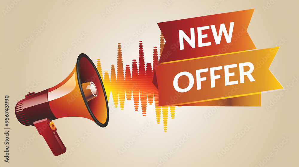 Modern Megaphone Illustration with Fiery Soundwave and Bold #39 New Offer