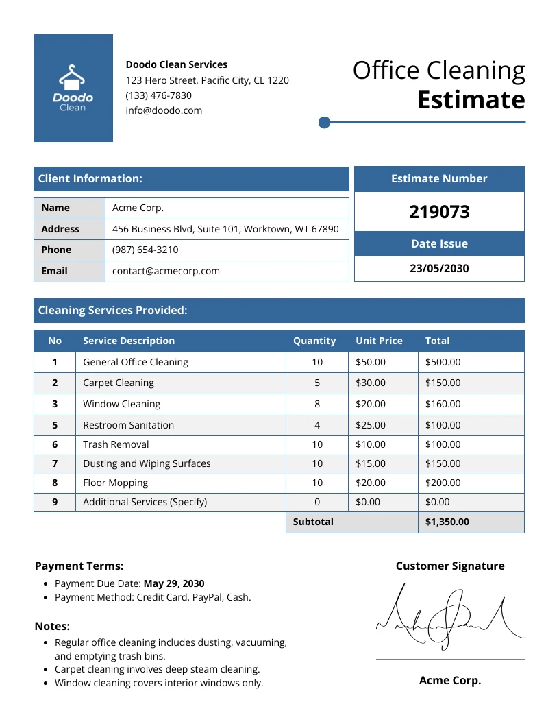 Office Cleaning Estimate Template Canva Editable Template Cleaning