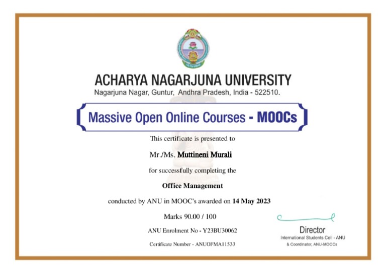 Office Management Course Completion Certificate PDF