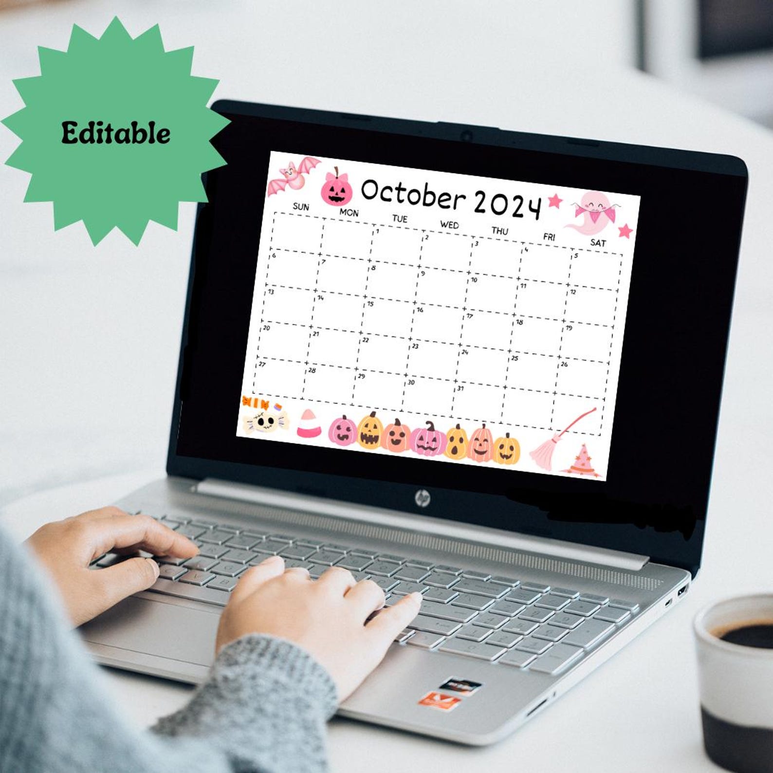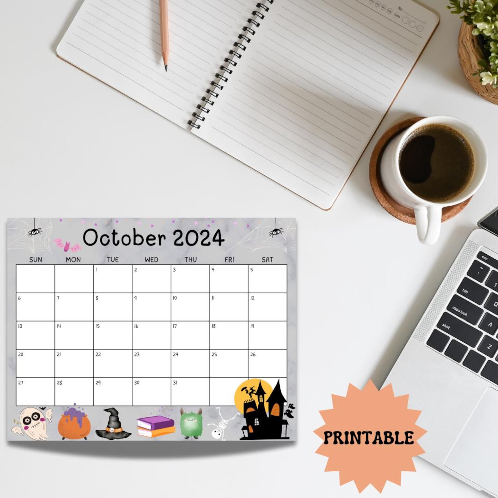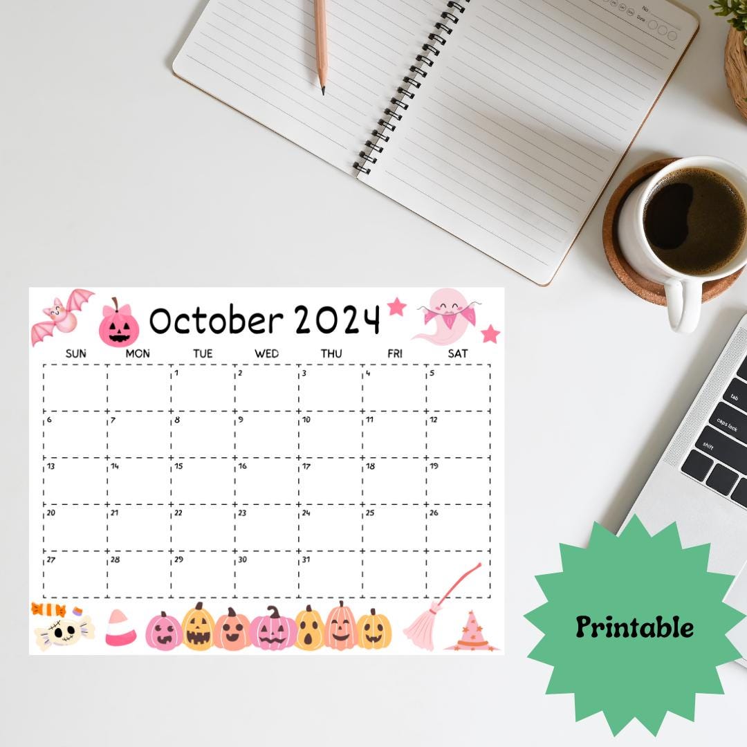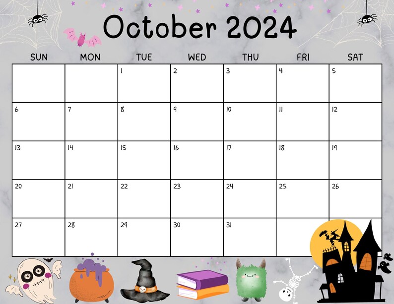 Editable October 2024 Calendar Spooky Halloween Digital Download