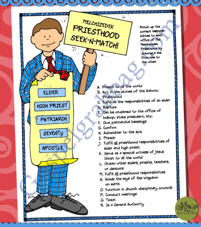 PRIESTHOOD: LDS Lesson Activity: Melchizedek Priesthood Seek and Match