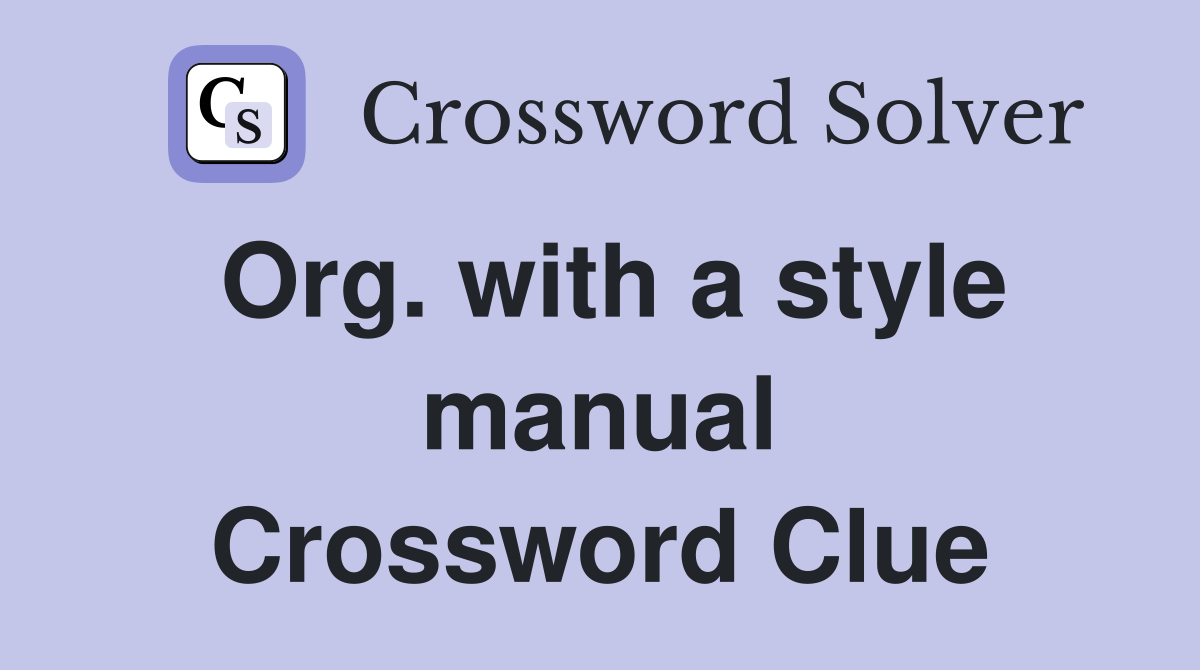 Org with a style manual Crossword Clue Answers Crossword Solver