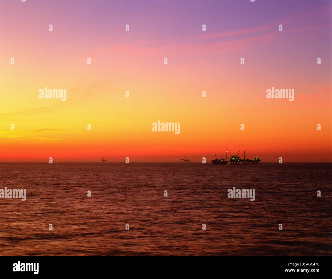 Offshore oil drilling platforms sunset Stock Photo Alamy