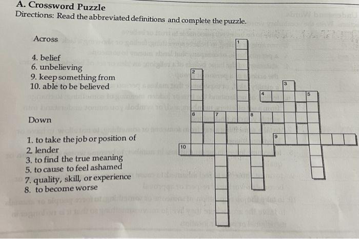 A Crossword Puzzle Directions: Read the abbreviated Chegg com