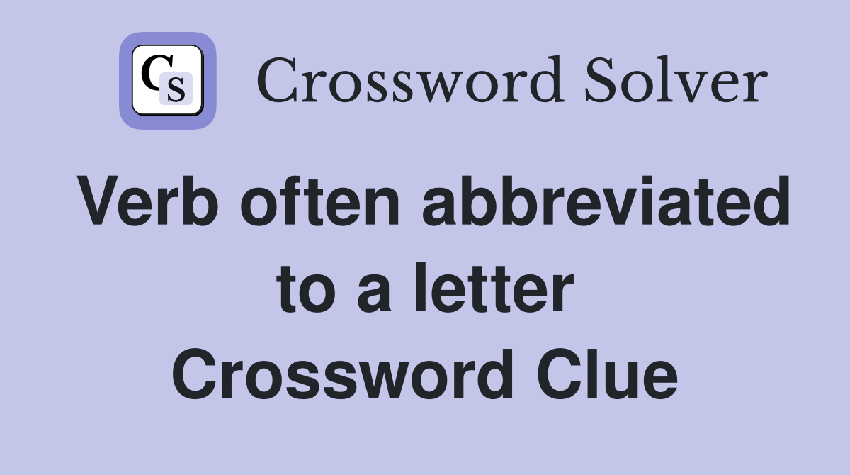 Verb often abbreviated to a letter Crossword Clue Answers Crossword