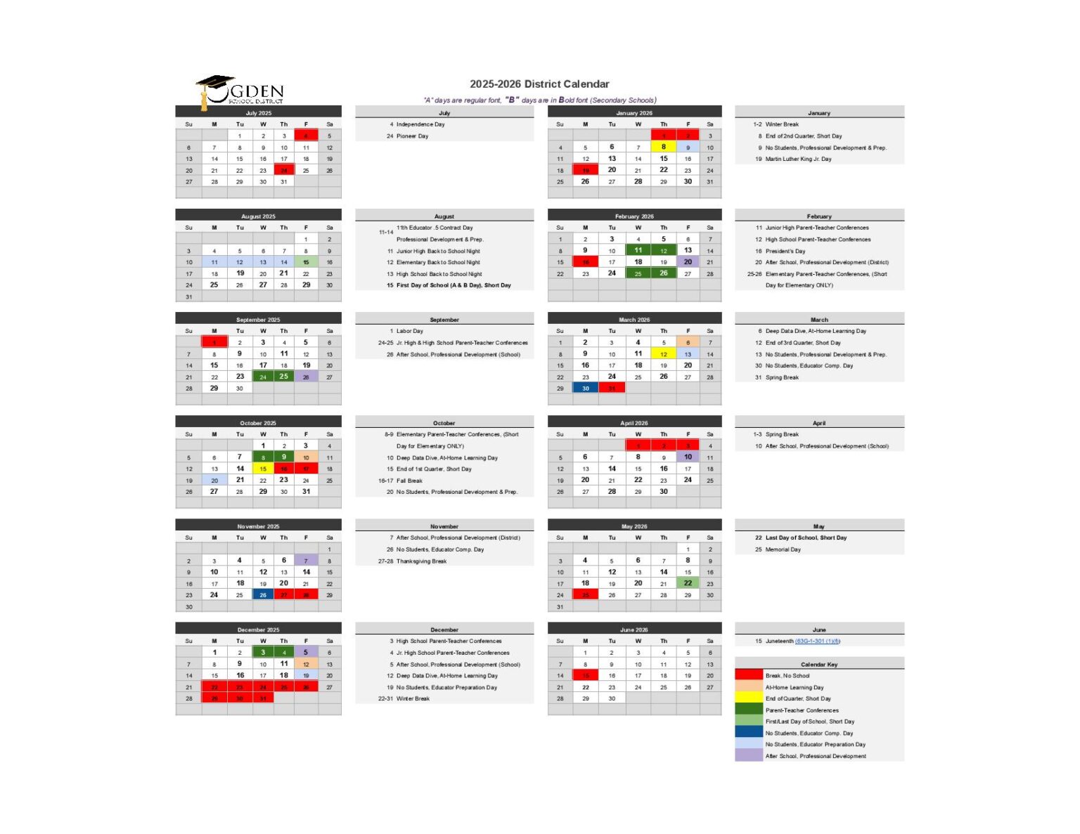 District Academic Calendar Ogden School District