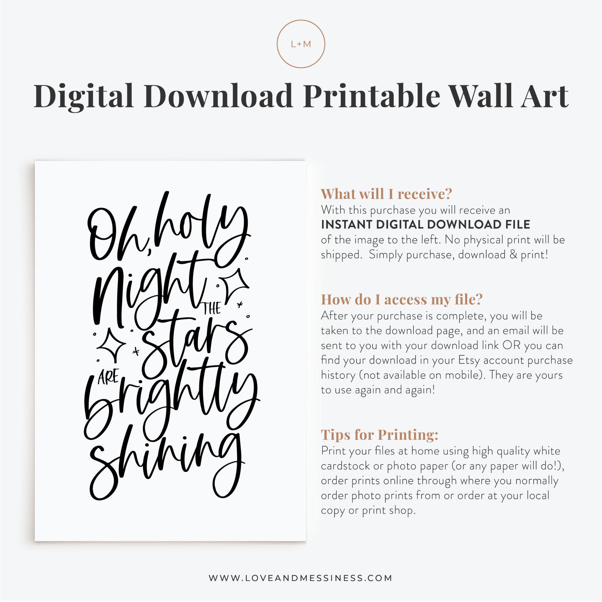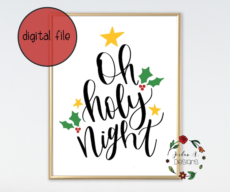 Oh Holy Night Christmas Printable Digital Christmas Wall Etsy
