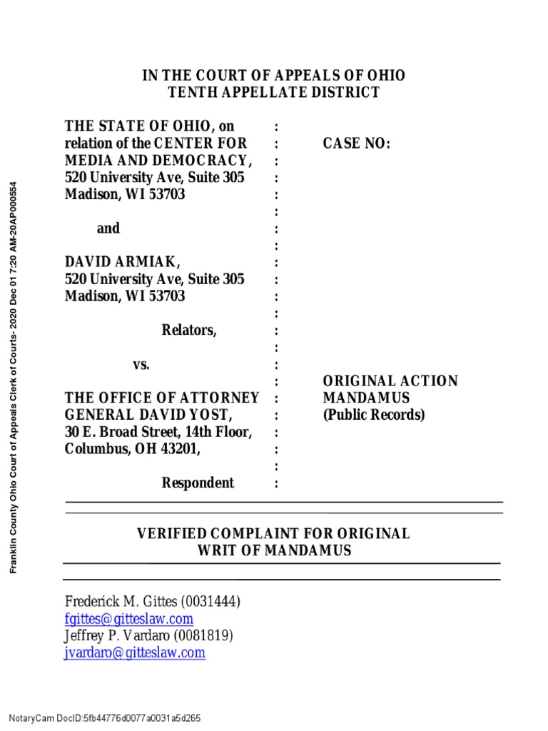 Mandamus Complaint PDF Legal Communication Legal Documents