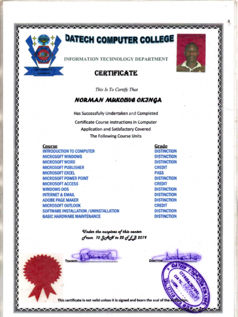 Computer Application Certificate PDF