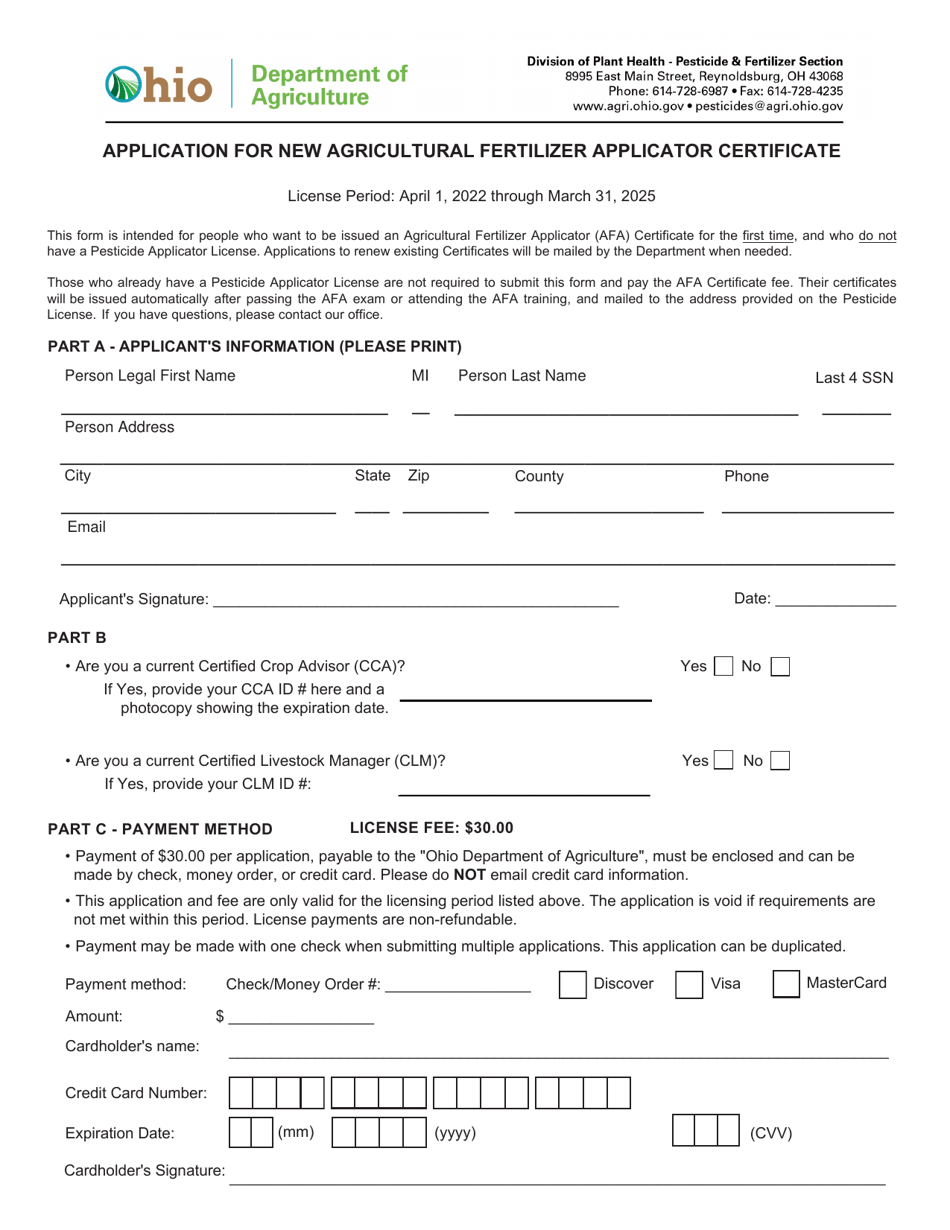 2025 Ohio Application for New Agricultural Fertilizer Applicator
