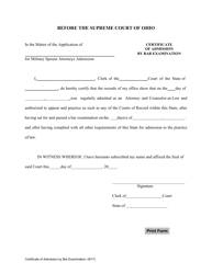 Ohio Certificate of Admission by Bar Examination Fill Out Sign