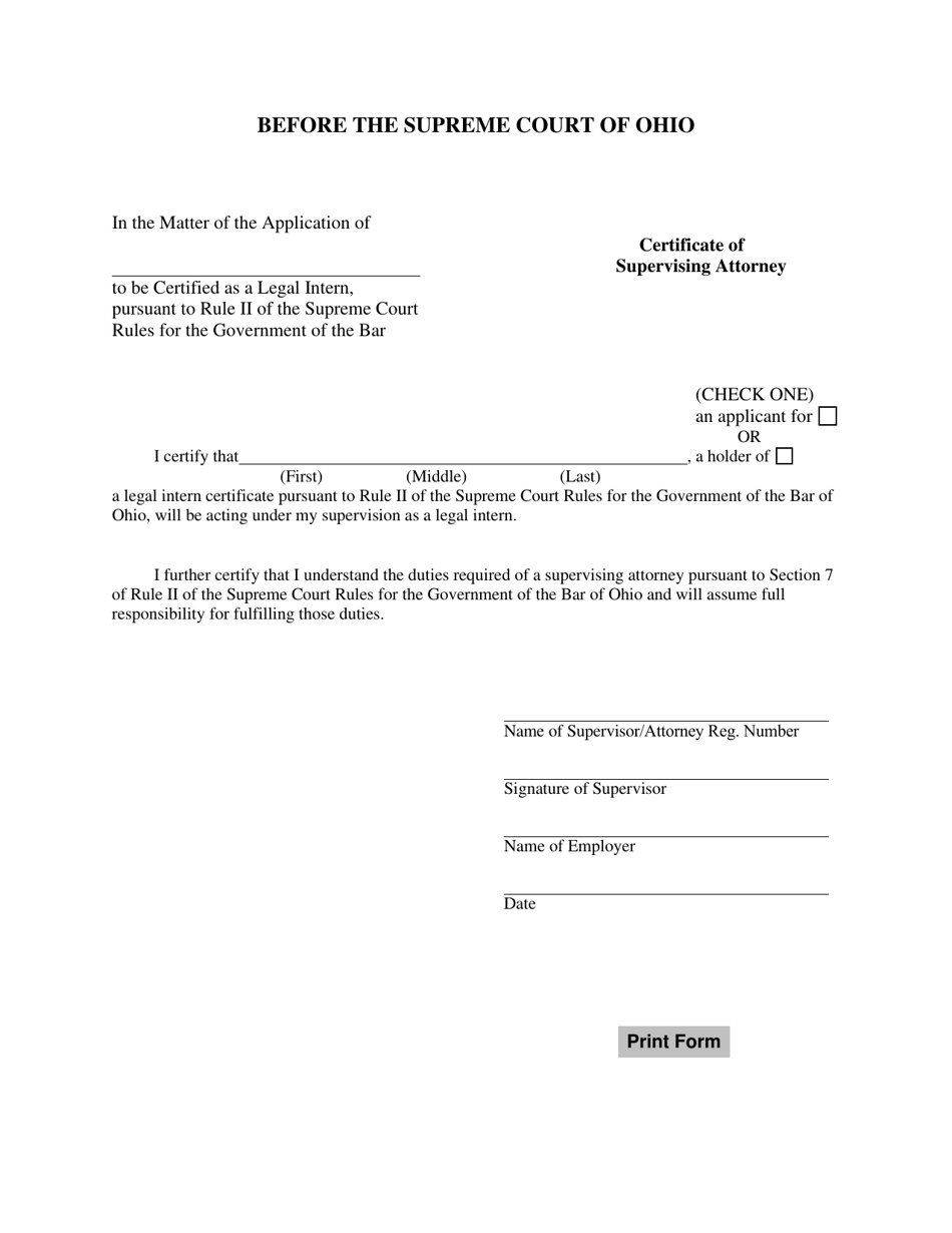 Ohio Certificate of Supervising Attorney Fill Out Sign Online and