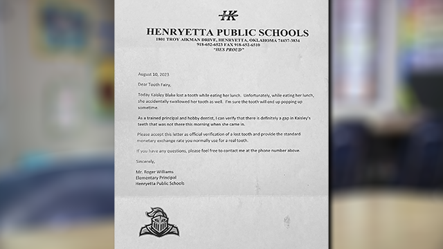 Oklahoma principal writes Tooth Fairy after student swallows tooth