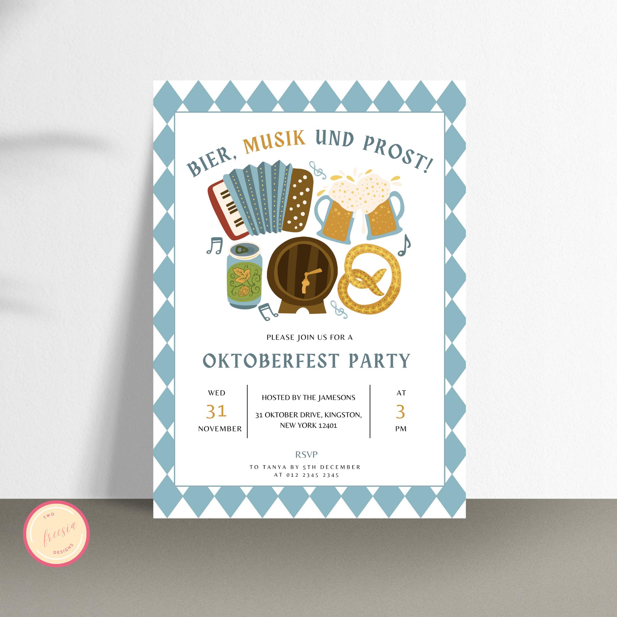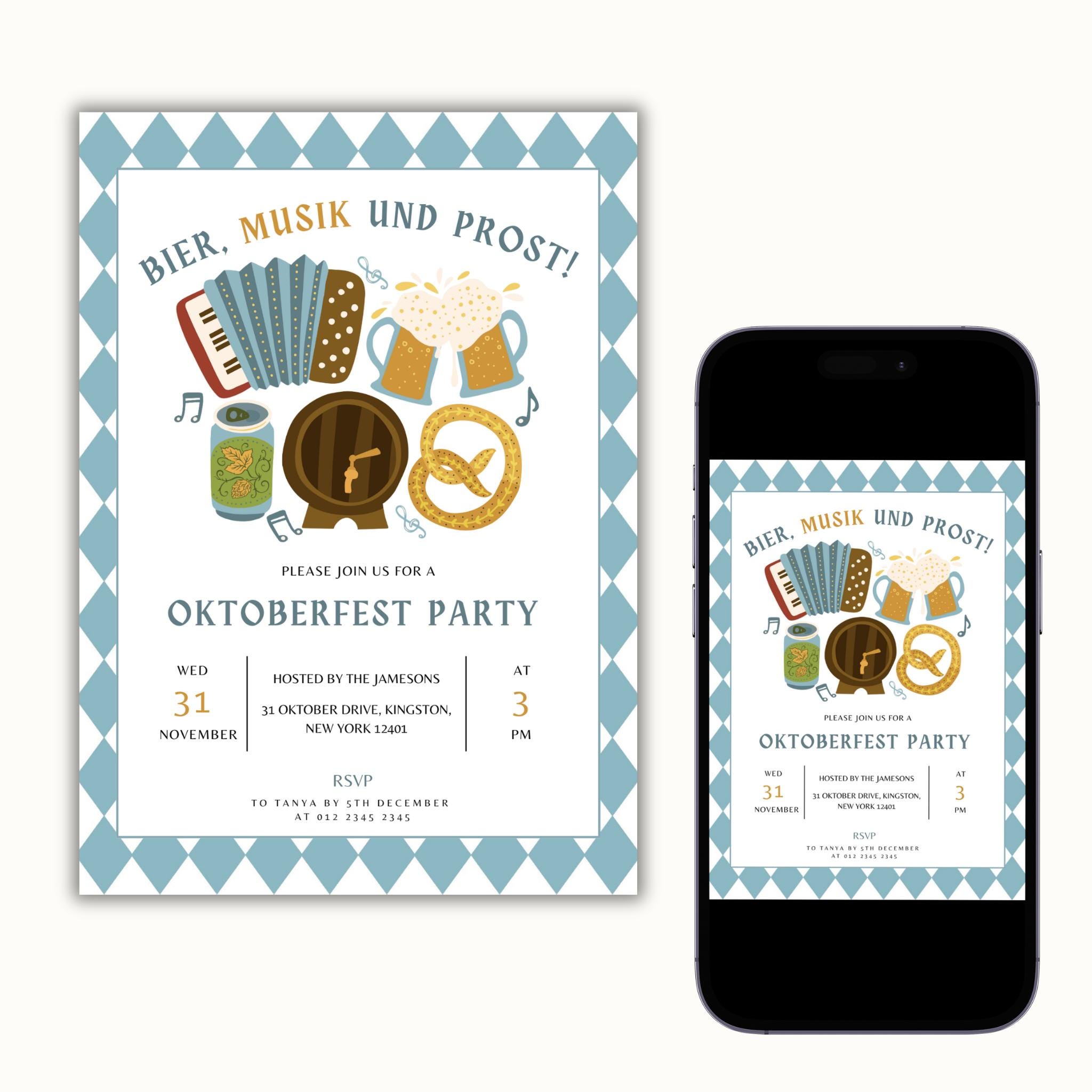 Oktoberfest Party Invitation Template Editable Oktoberfest Invite