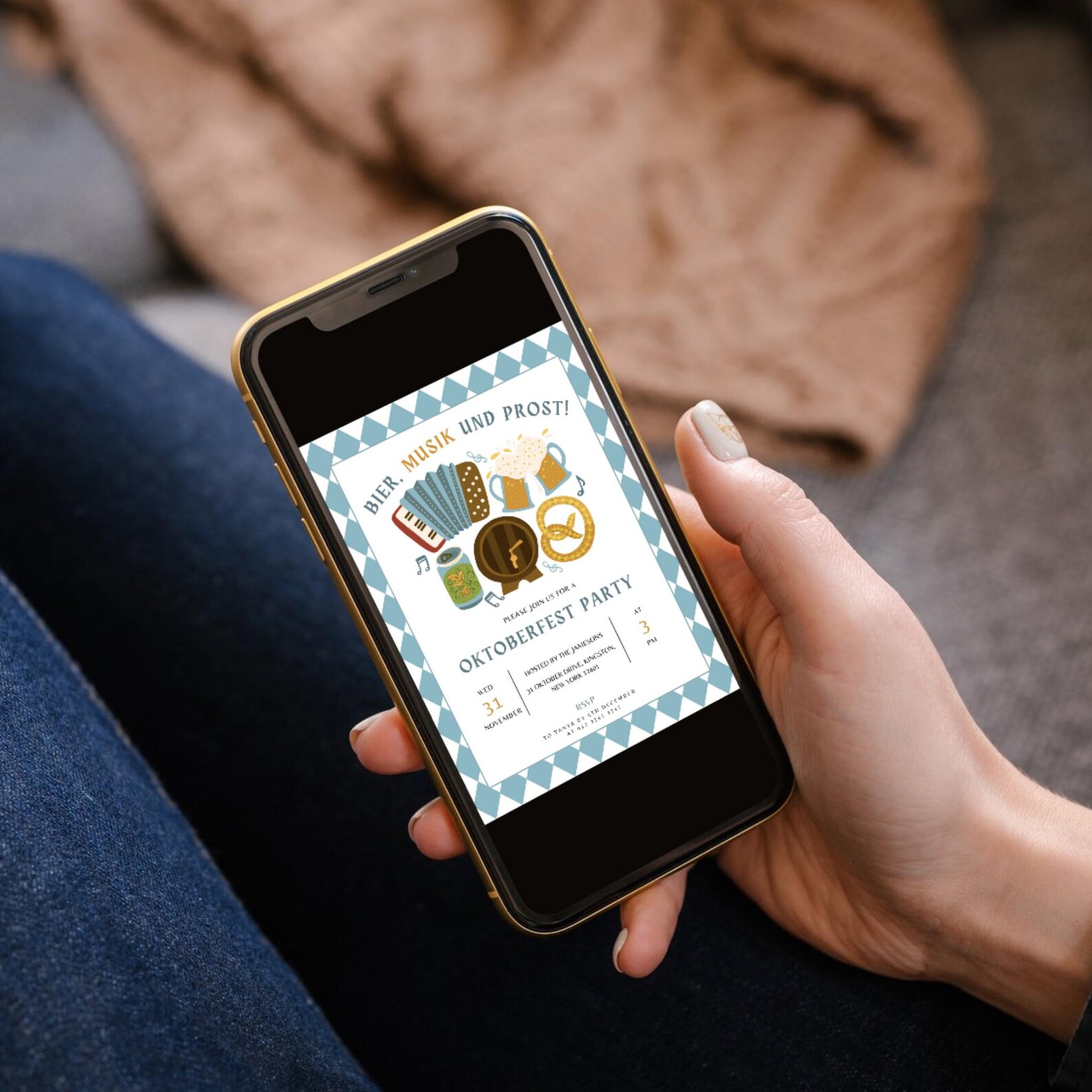 Editable Oktoberfest Invitation Template Blue Bavarian Check