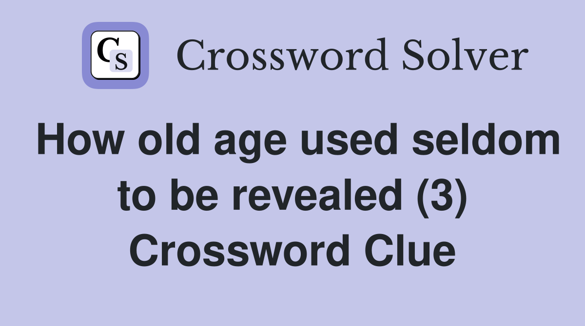 How old age used seldom to be revealed (3) Crossword Clue Answers