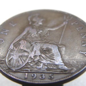 1935 PENNY COIN King George V Bronze Large 1d Coin Original Old