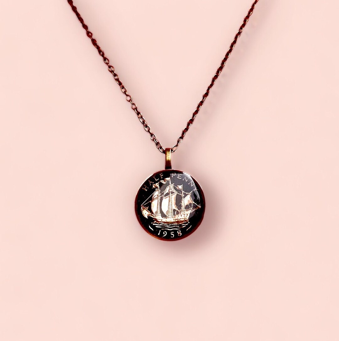 Antique Coin Necklace Nautical Vintage British Bronze Jewellery Black