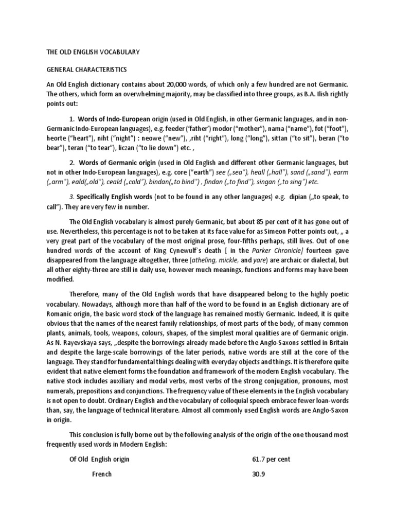 Old English Vocabulary Words Vocabulary Point