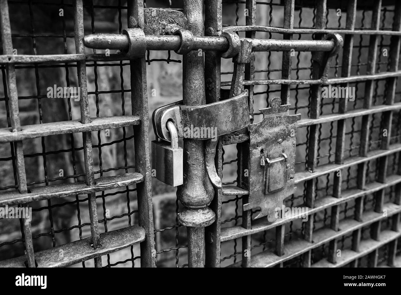Old metal gate chain Black and White Stock Photos Images Alamy