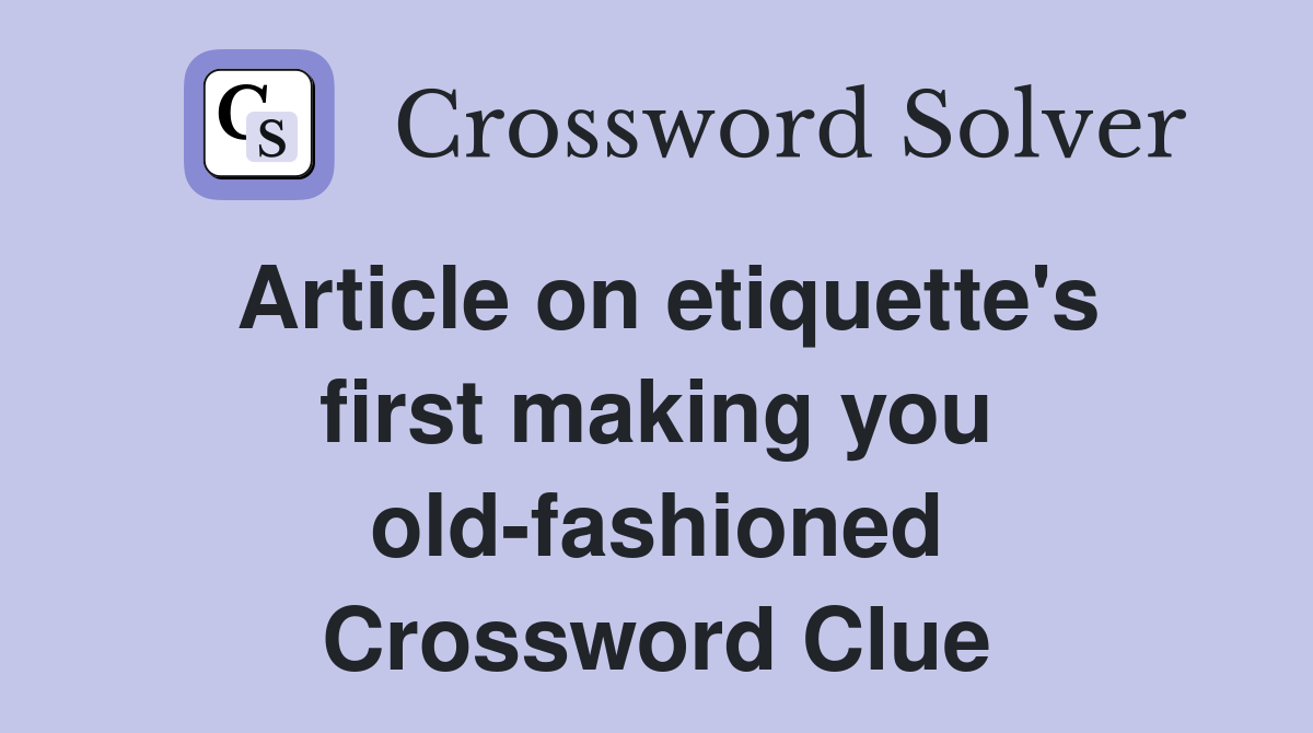 Ancient old fashioned (7) Crossword Clue Answers Crossword Solver